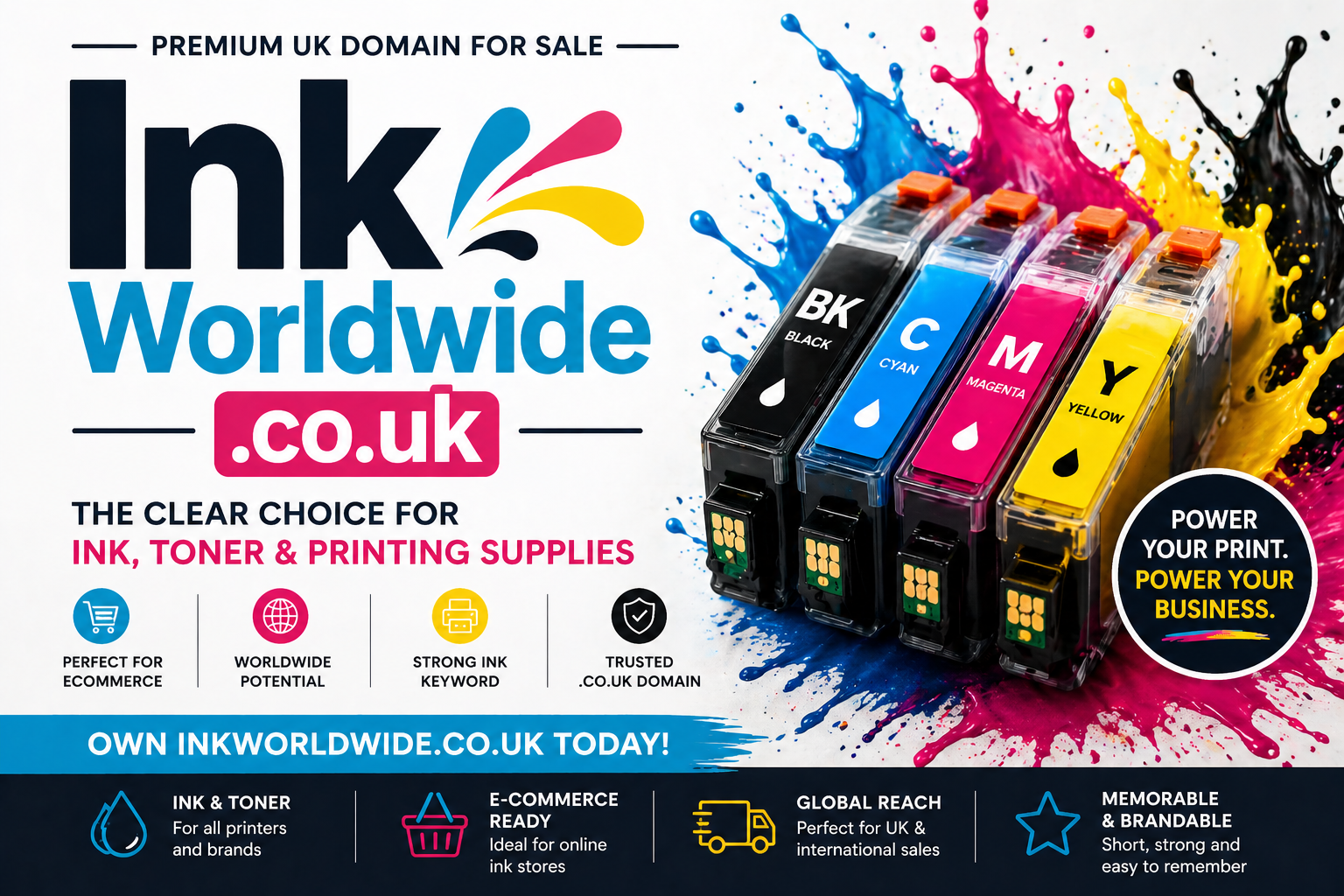 A bold, professional UK domain ideal for printer ink, toner, cartridges, printing supplies,