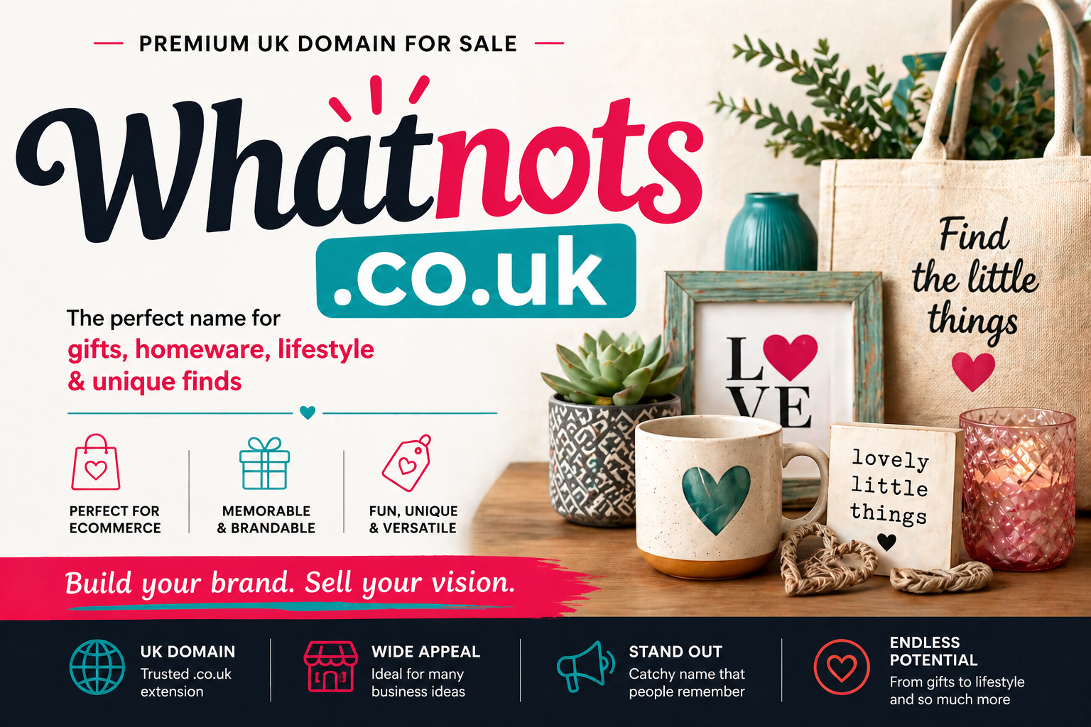 Whatnots.co.uk is short, friendly and easy to remember — perfect for a brand with